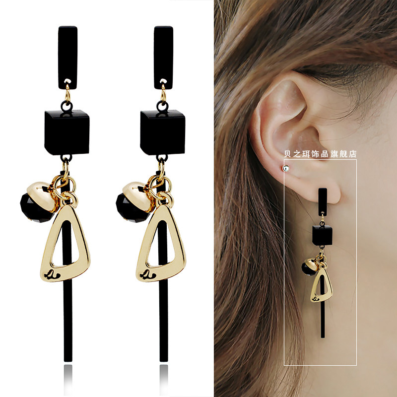 时尚气质韩版耳环女 长款黑色几何形耳饰简约耳坠无耳洞耳夹耳钉