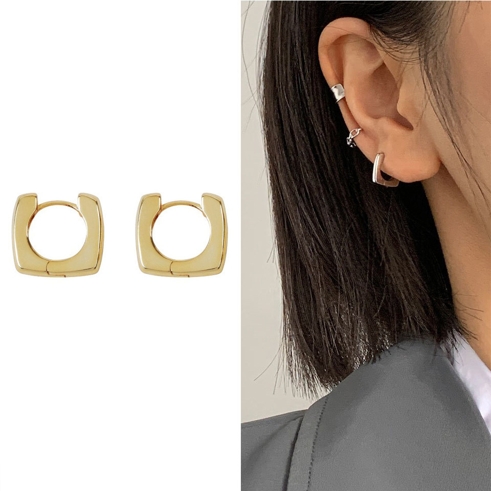 韩版耳环潮女小众设计感高级耳饰s925纯银耳钉方形耳扣轻奢耳圈