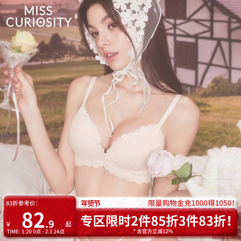好奇蜜斯蕾丝内衣女小胸聚拢显大性感文胸罩套装无钢圈薄防下垂白