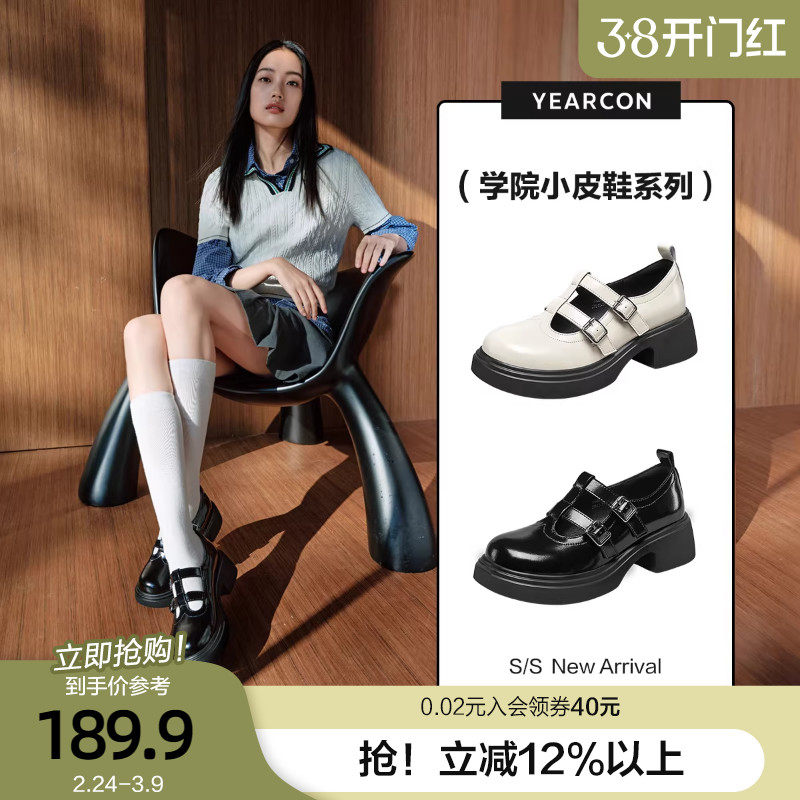 意尔康法式复古玛丽珍鞋女2026春季款厚底单鞋镂空学院风小皮鞋