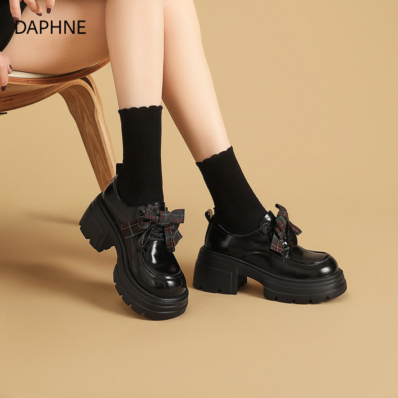 达芙妮厚底女鞋时尚系带乐福鞋2026春季新款百搭黑色学院风小皮鞋