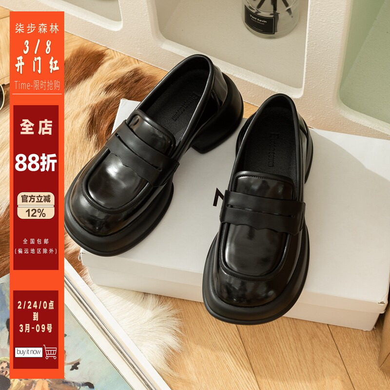 柒步森林牛皮学院风小皮鞋厚底制服JK乐福鞋粗跟单鞋子女春秋新款