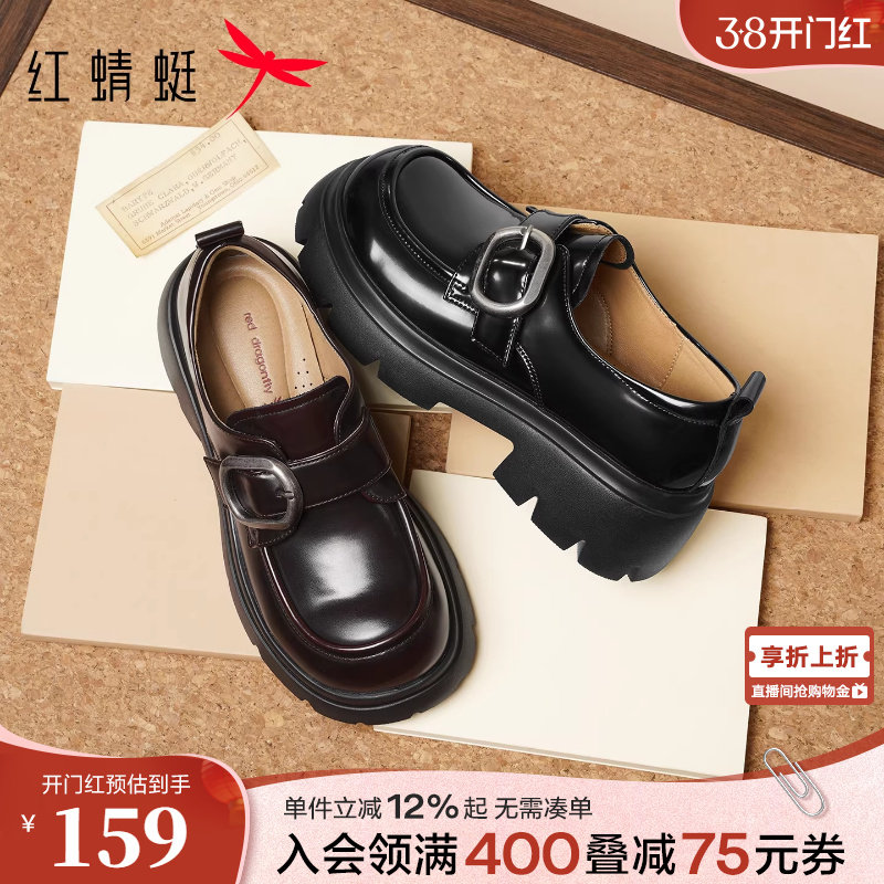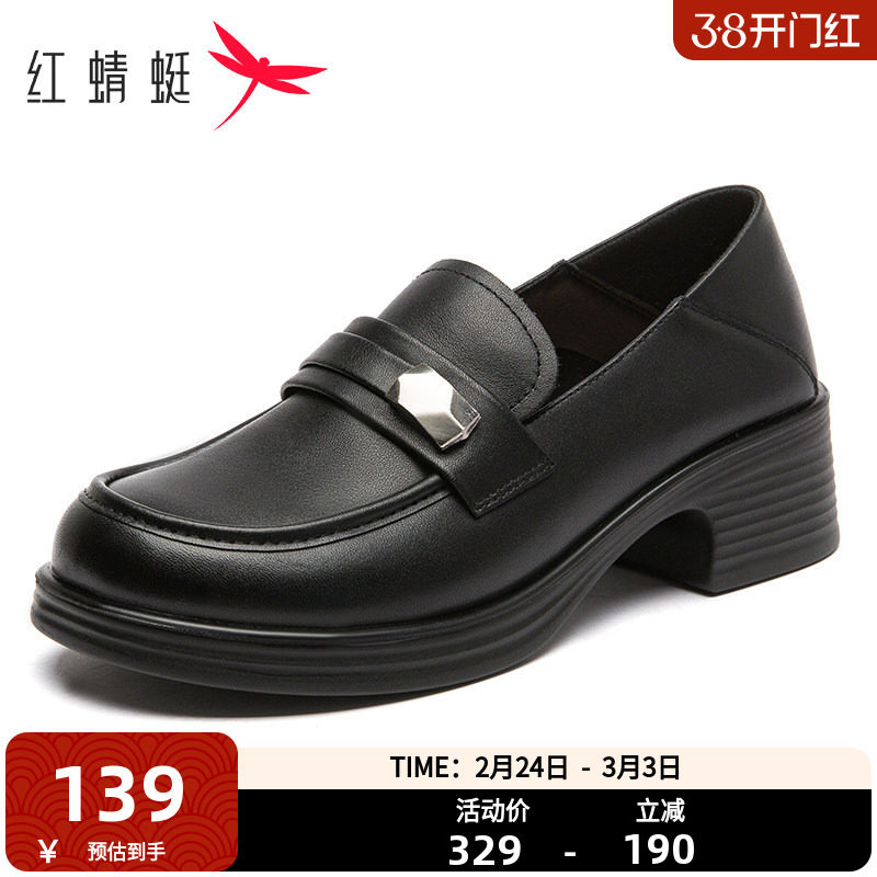 红蜻蜓乐福鞋2025秋季新款女鞋通勤休闲单鞋厚底英伦学院风小皮鞋