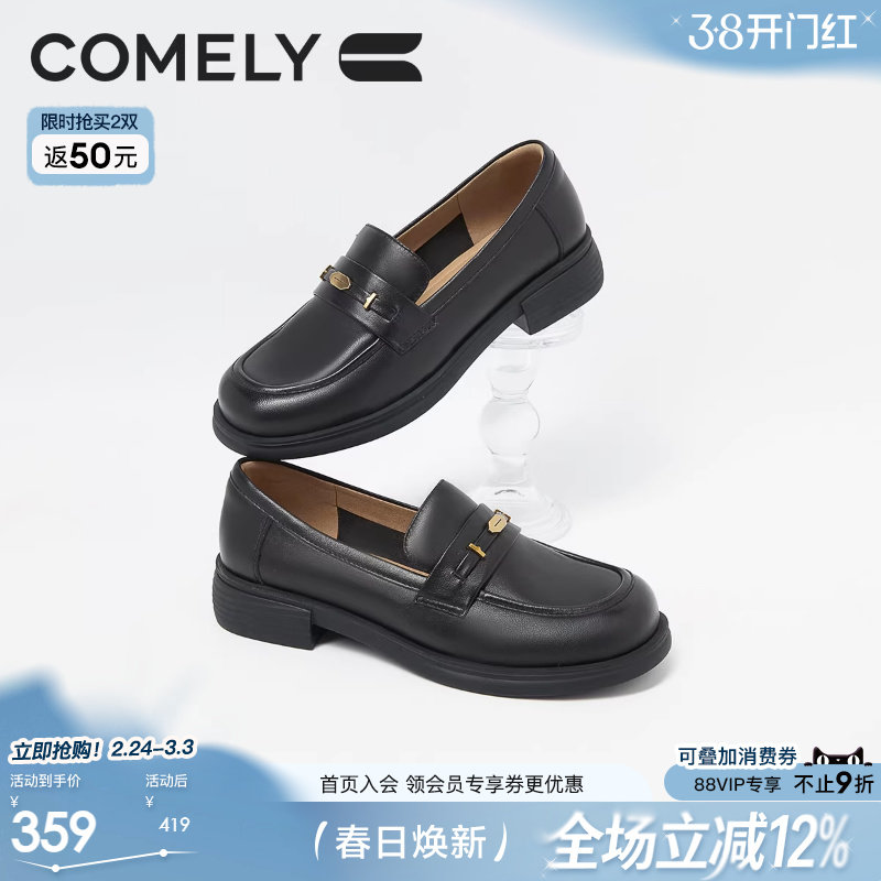 康奈女鞋2025秋季新品真皮软底英伦学院风小皮鞋复古乐福鞋妈妈鞋