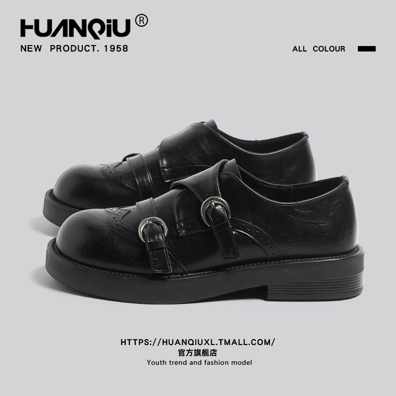 诗路花语2026春真皮布洛克皮带扣乐福鞋学院风小皮鞋单鞋91-6056