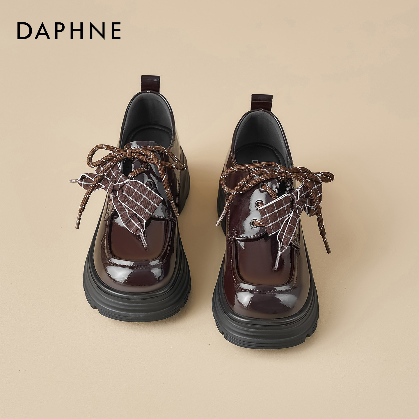 达芙妮厚底乐福鞋女2026新款复古英伦风系带单鞋棕色学院风小皮鞋