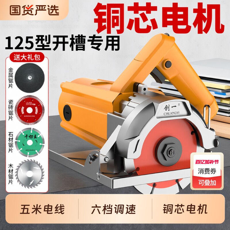 创一切割机家用小型木工专用手提瓷砖石材金属开槽云石机工业电锯
