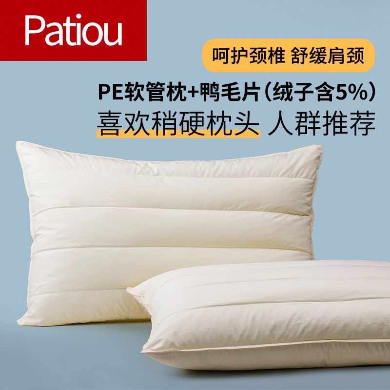 帕缇欧全棉PE软管硬枕外贸枕芯白鸭毛枕成人羽毛双面枕头一对拍2