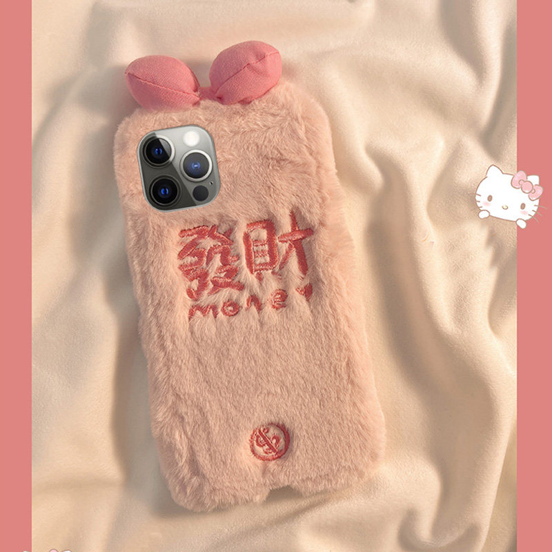 毛绒绒新年发财适用苹果iPhone15promax手机壳14plus简约13mini迷你12粉色11秋冬季xr毛茸茸xsmax8/7/6/5s/se