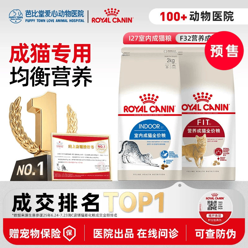 皇家猫粮I27室内F32全价成猫粮0.8/2/10kg营养20斤实惠装官方正品