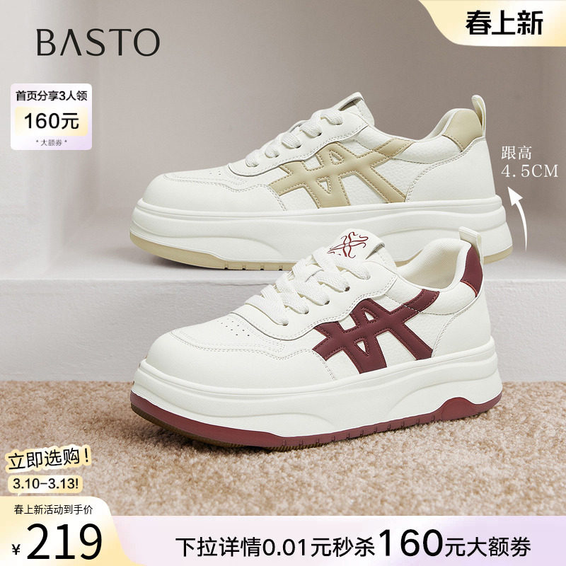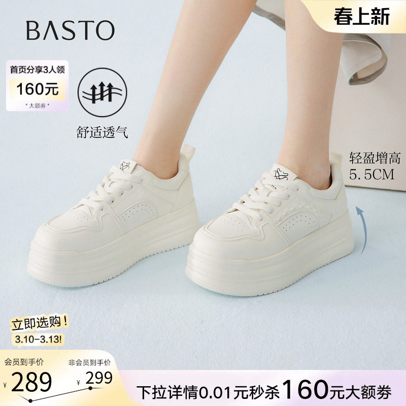 百思图2026春季新款厚底松糕小白鞋百搭运动鞋女休闲鞋DD229AM6