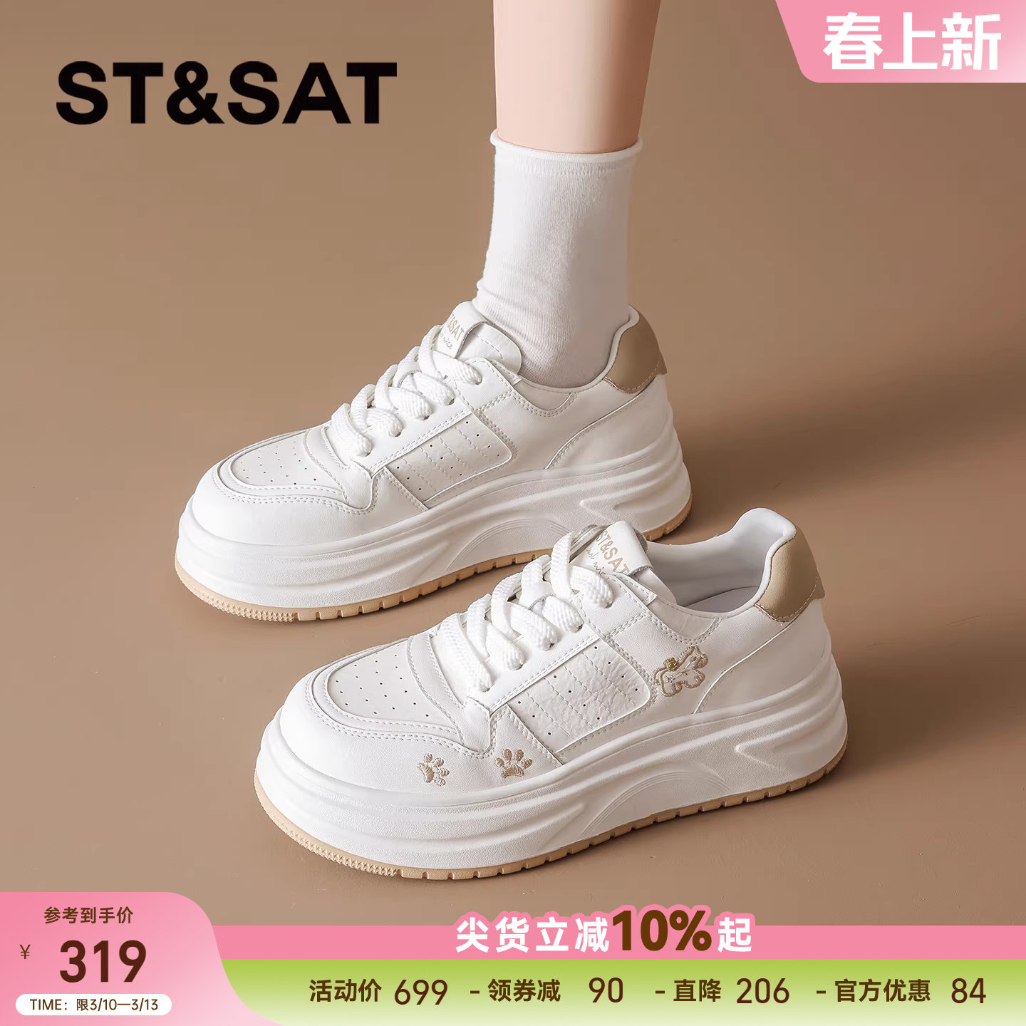 星期六厚底板鞋女鞋春季新款增高运动小白鞋女士显脚小百搭松糕鞋