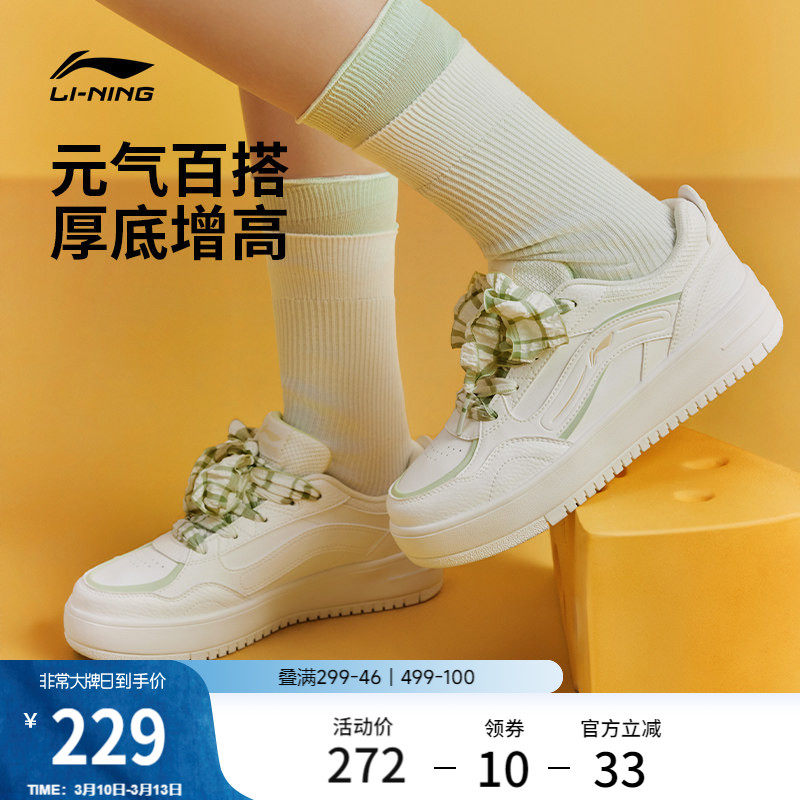 李宁元宝丨 板鞋女增高休闲鞋经典舒适百搭小白鞋新款增高运动鞋