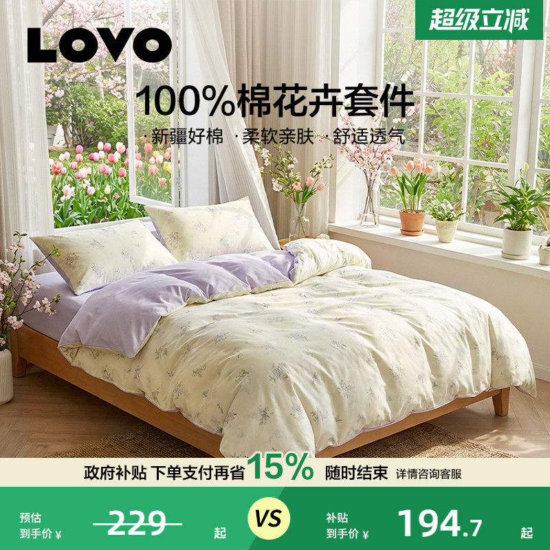 罗莱生活LOVO全棉纯棉四件套花卉床单被套学生宿舍三件套新品