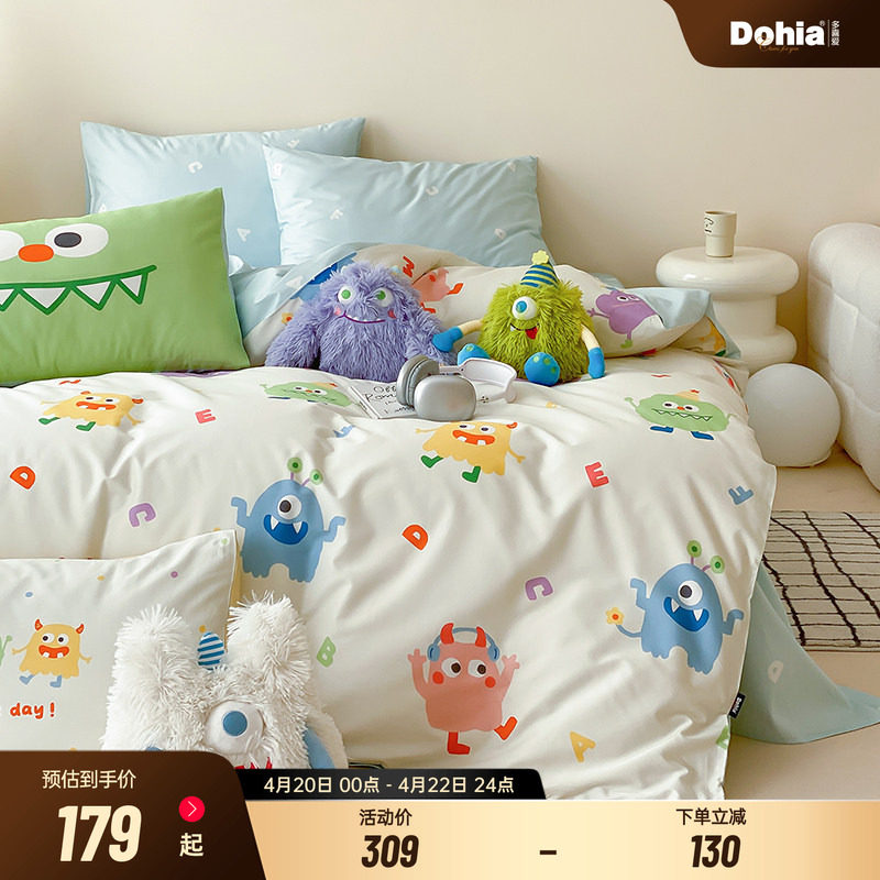 多喜爱卡通四件套全棉床品纯棉床单被套儿童多巴胺三件套可爱怪兽