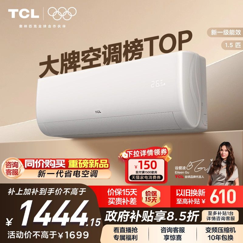 【新品】TCL空调省电家大1.5匹挂机变频冷暖新一级壁挂式空调