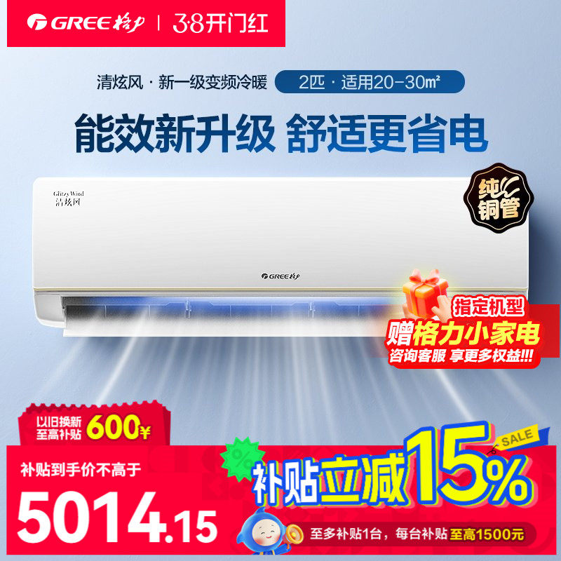 【格力官方】变频壁挂式空调挂机2匹家用一级变频冷暖节能清炫风