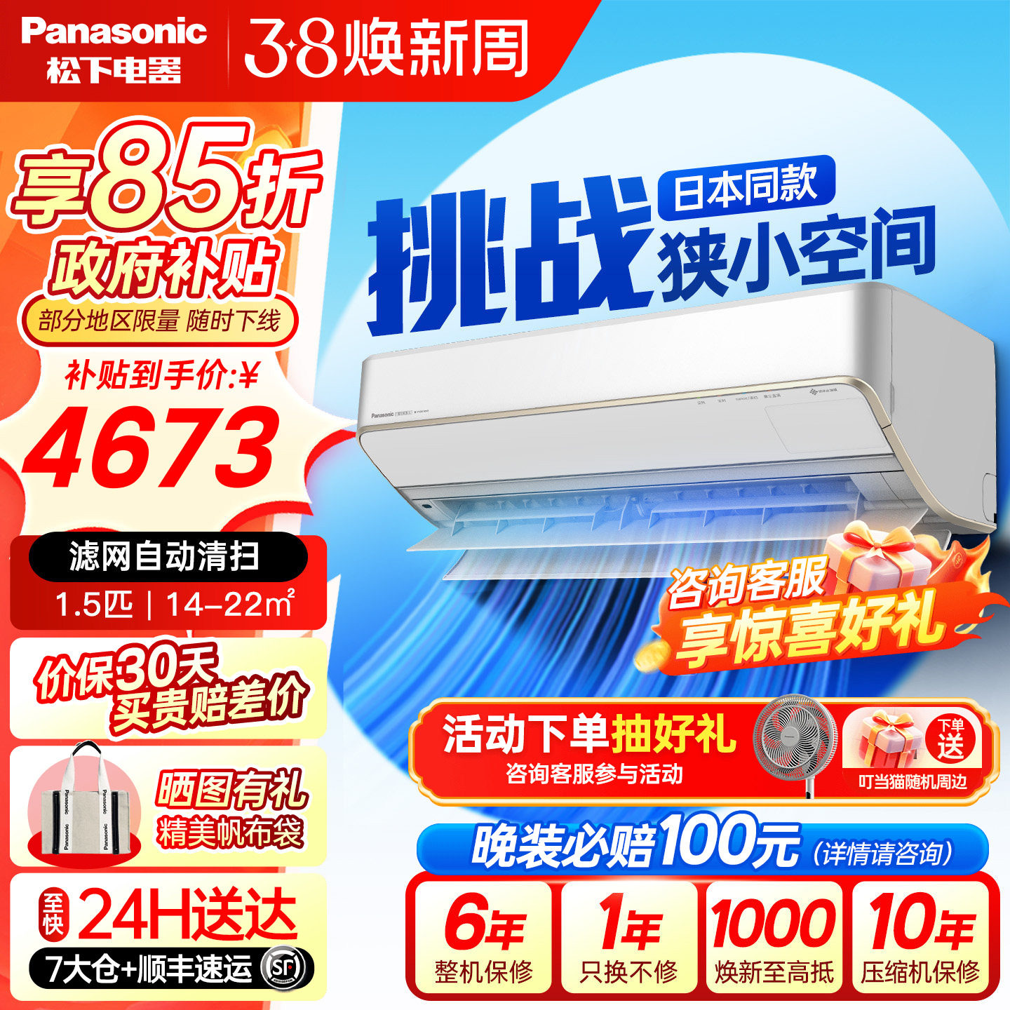 松下变频冷暖壁挂式空调原装压缩机节能独立除湿双排铜管E13KQ10