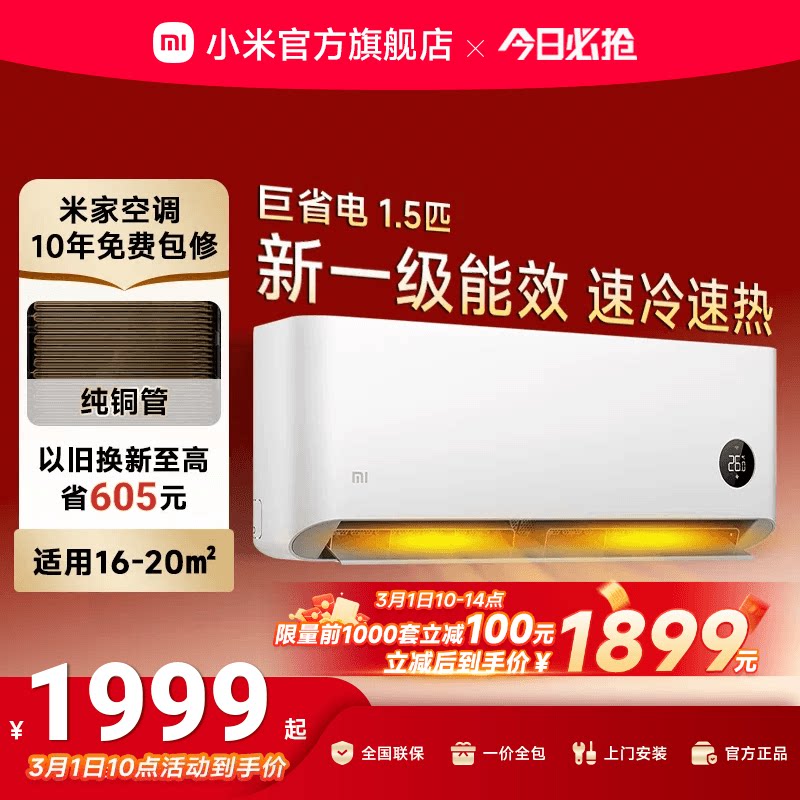 小米巨省电空调挂机冷暖两用1.5匹1匹一级能效变频家用智能壁挂式