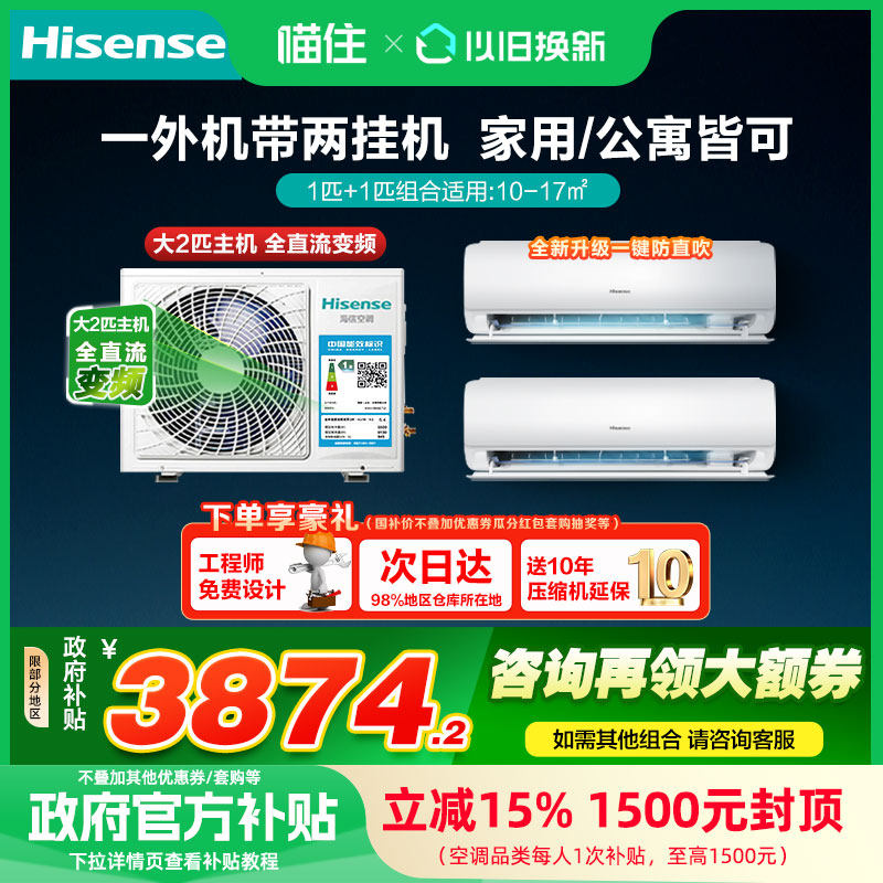 政府补贴海信一拖二空调挂机大1匹1.5匹2匹家用变频壁挂式空调603