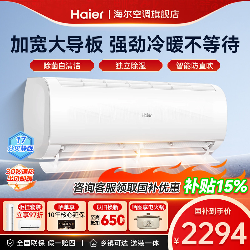 【纯铜管】海尔新一级大1匹1.5匹变频冷暖挂机壁挂式空调净省电E1