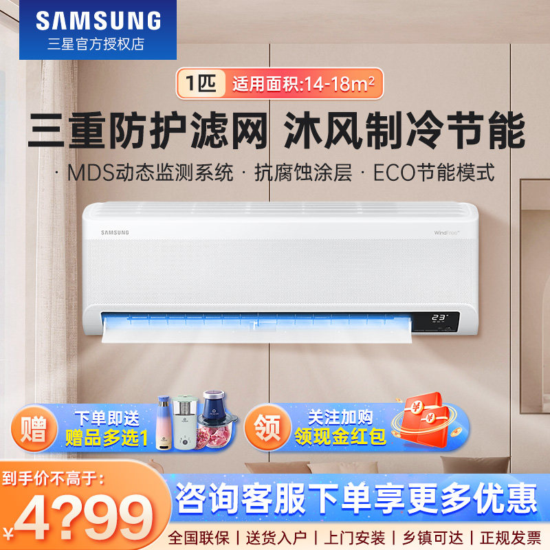 三星空调沐风1/1.5匹无风感家用WIFI冷暖变频节能壁挂式空调