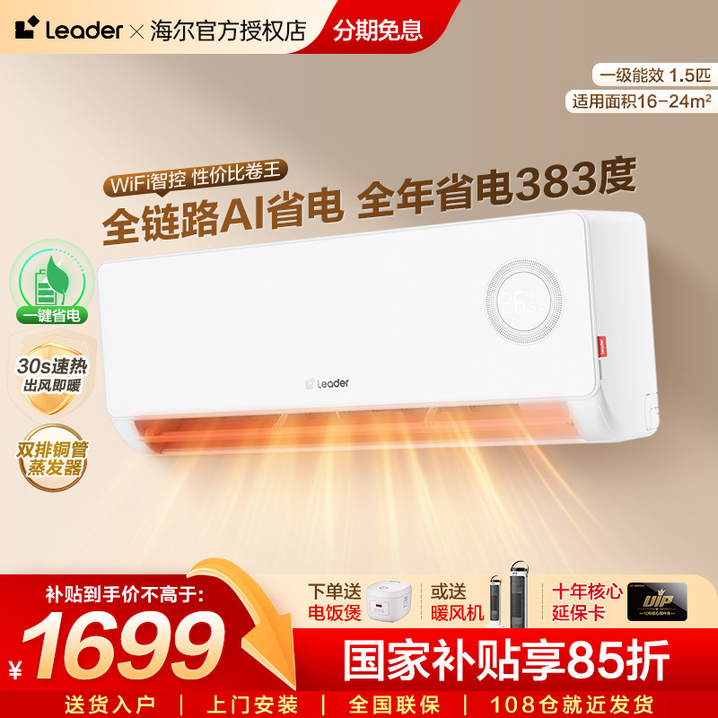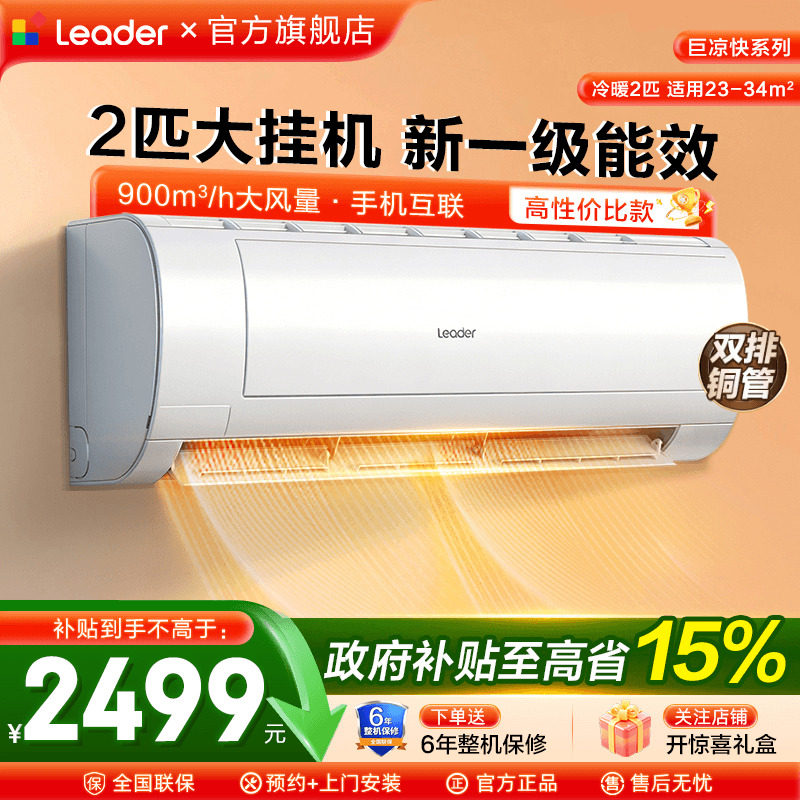 海尔空调2匹Leader大挂机3匹壁挂式空调客厅一级能效家用旗舰店