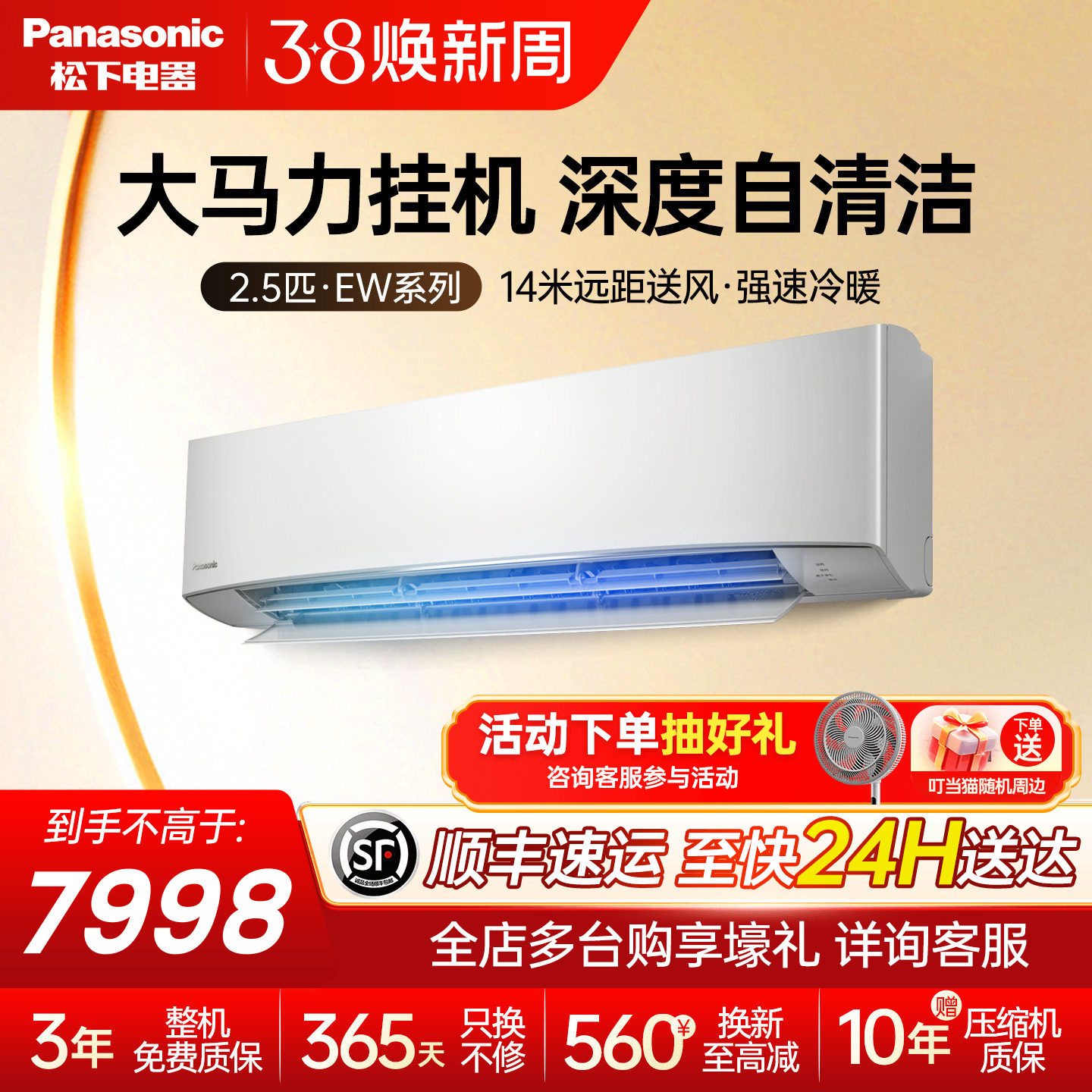 松下2.5匹冷暖壁挂式空调客厅挂机新3级能效清循环智清洁EW22KP30
