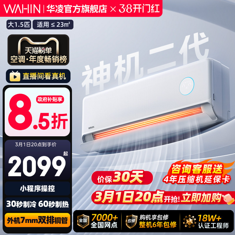 【补贴15%】华凌空调大1.5匹神机一级能效卧室壁挂式空调113