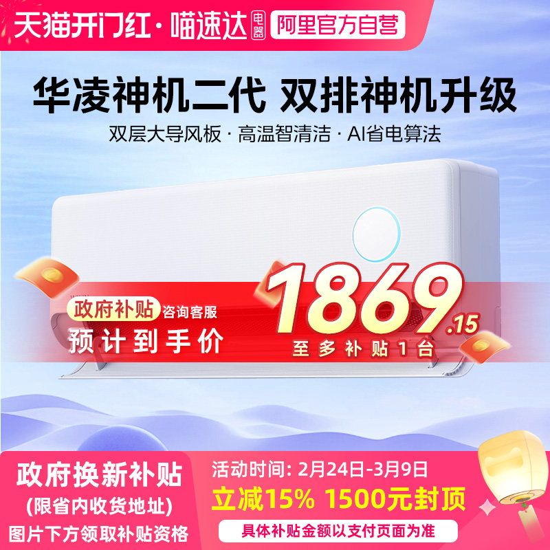 华凌空调双排神机二代HE家用挂机变频冷暖新一级大1.5匹2匹壁挂式