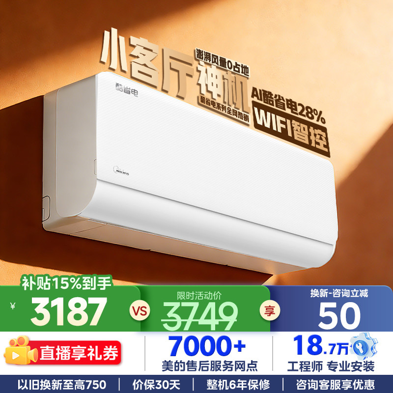 【菜鸟物流】美的酷省电2025一级能耗变频冷暖壁挂式空调官方正品