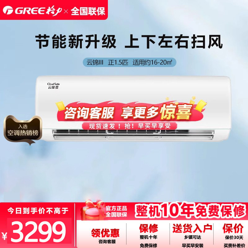 Gree/格力 一级能效1/1.5匹云锦三代冷暖节能壁挂式空调
