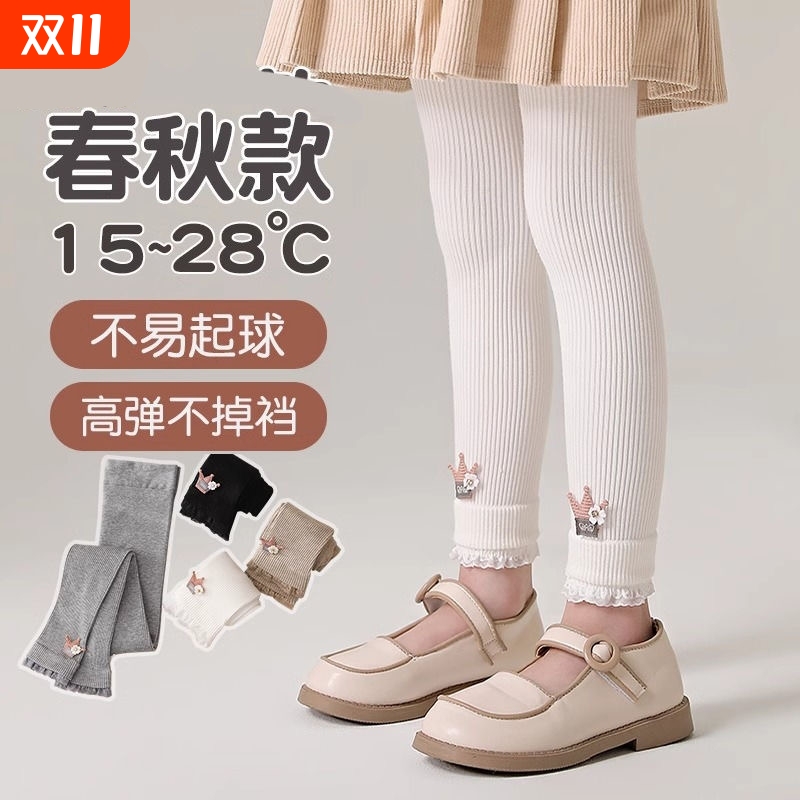 女童打底裤春秋薄款女孩白色打底袜不连脚外穿秋冬加绒儿童九分裤