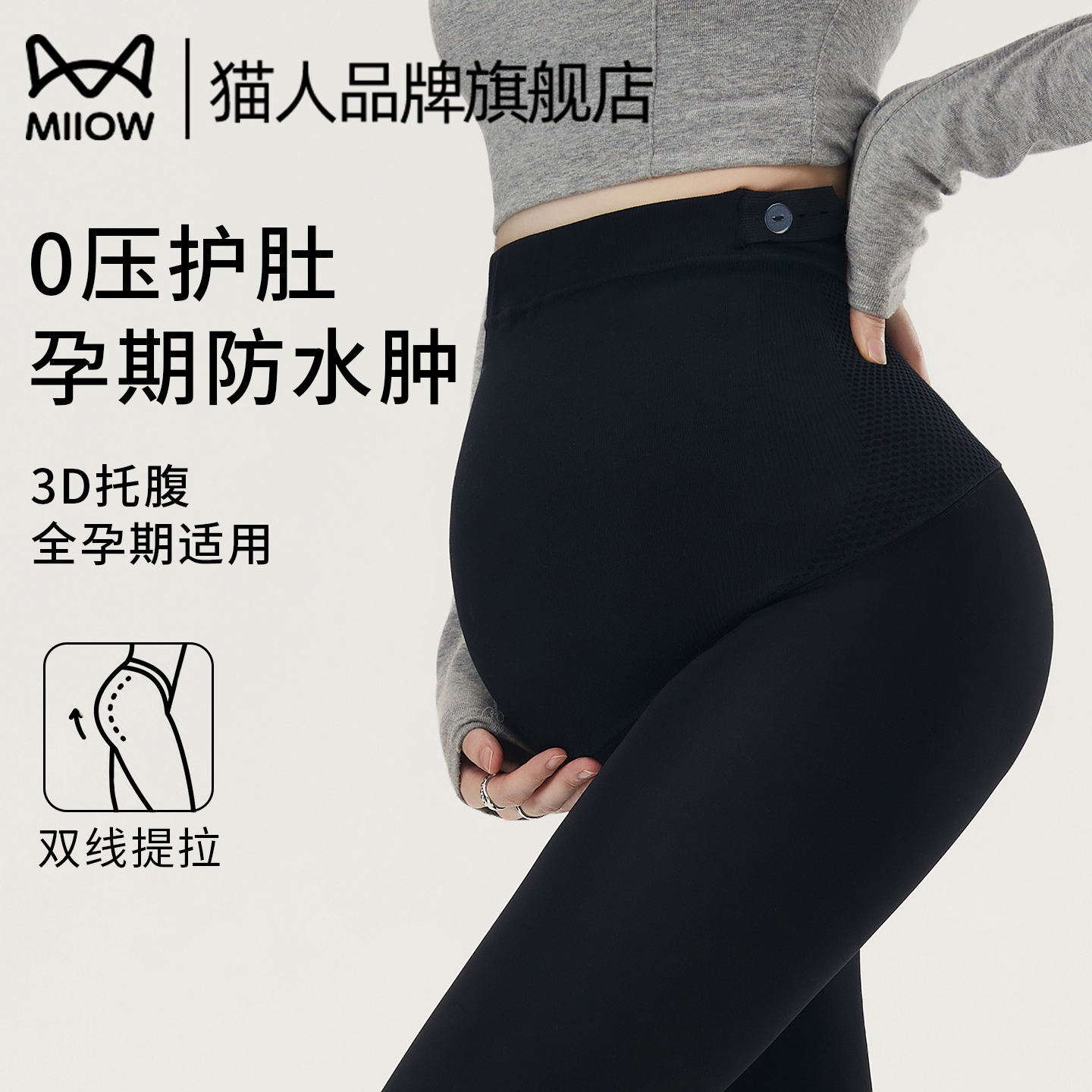 猫人孕妇打底秋裤女薄款不勒肚子怀孕期内搭可外穿大码加绒保暖裤