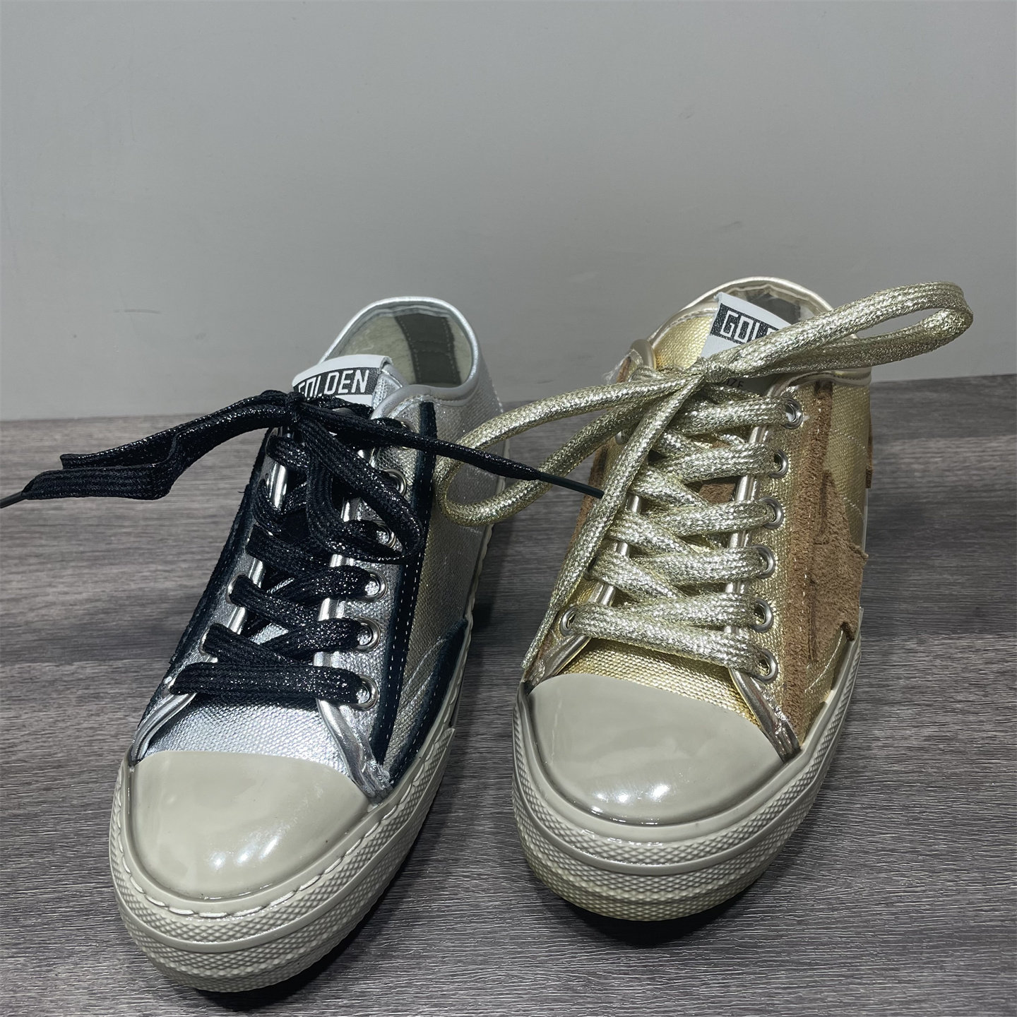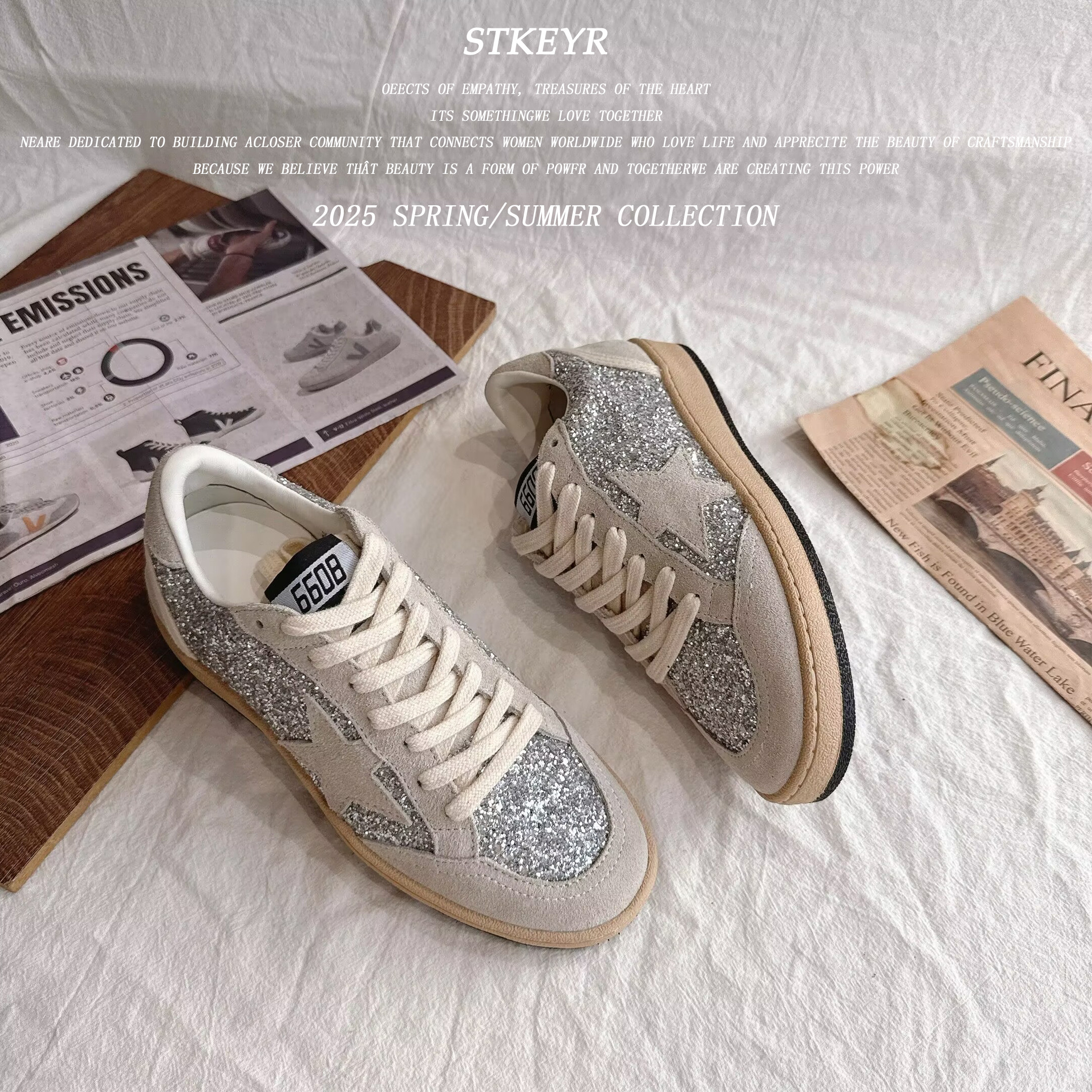STKEYR亮片星星小脏鞋女银色做旧休闲板鞋百搭潮鞋系带浅口橡胶底