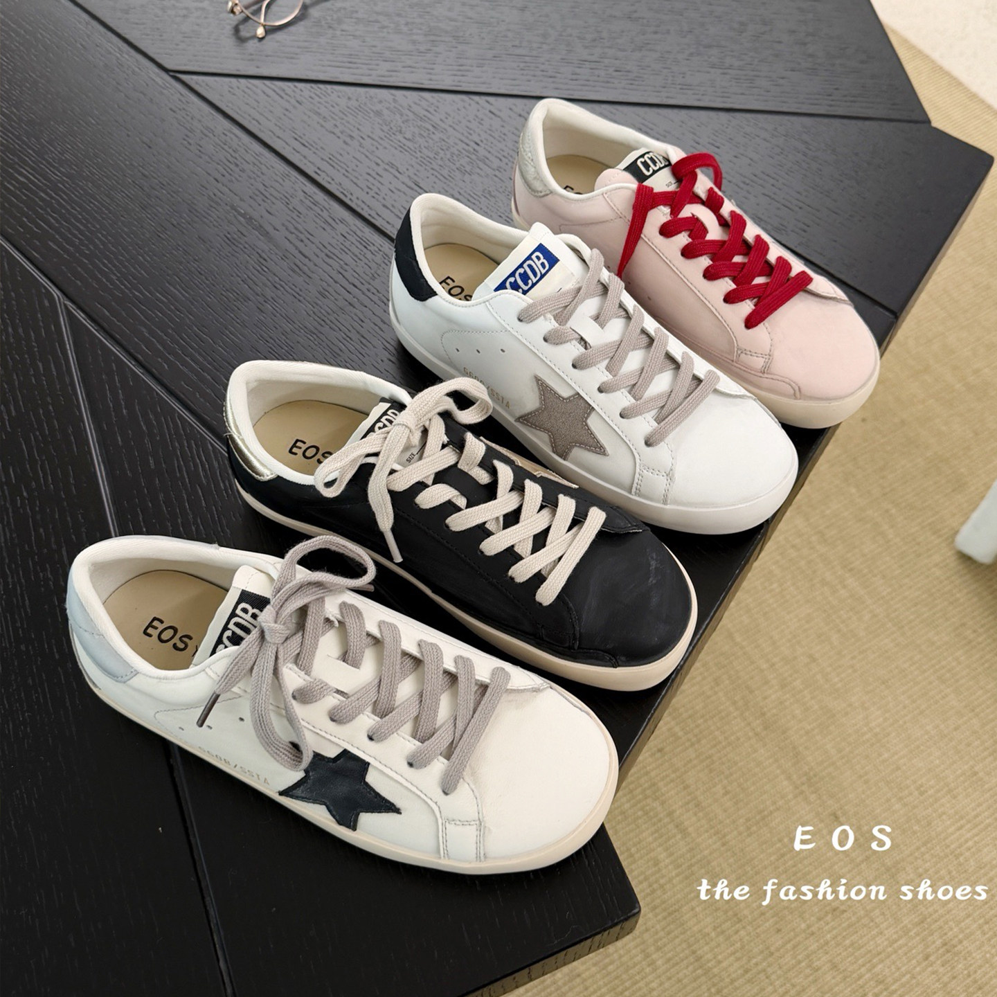 。EOS女鞋2590-1星星小脏鞋女板鞋德训小白鞋休闲拼色复古平底鞋