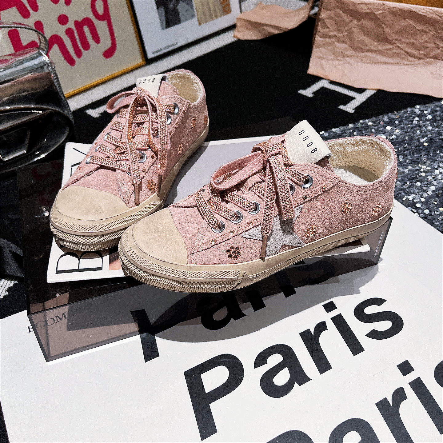 断码处理春季新款韩版做旧星星小脏鞋女水钻系带休闲平底脏脏板鞋
