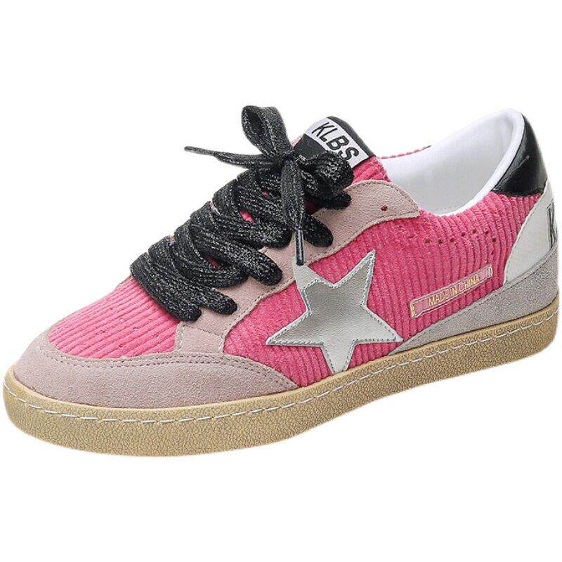 香港做旧星星小脏鞋女2025秋季新款真皮粉色脏脏鞋厚底休闲板鞋潮