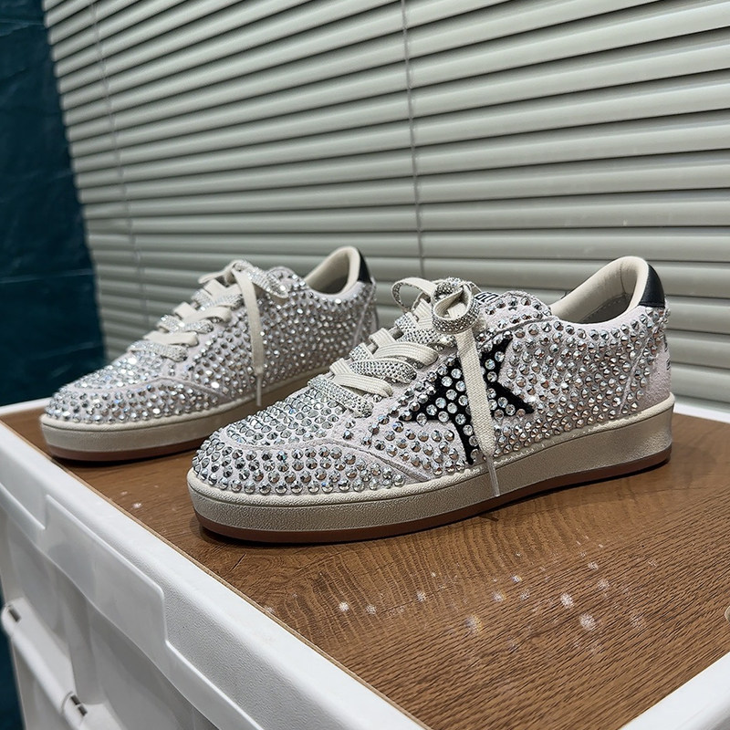 星星亮片小脏鞋女秋复古德训鞋2025新款百搭休闲单鞋爆闪做旧板鞋