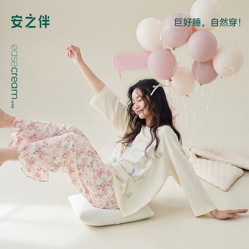 安之伴新款睡衣女春秋季纯棉圆领长袖休闲套装宽松甜美可爱家居服
