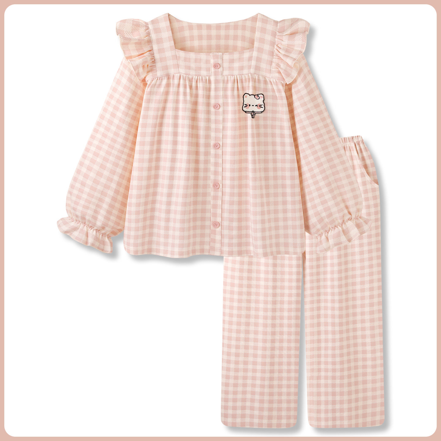 2026新款纯棉长袖睡衣女春秋季格子可爱小猫女士甜美家居服可外穿