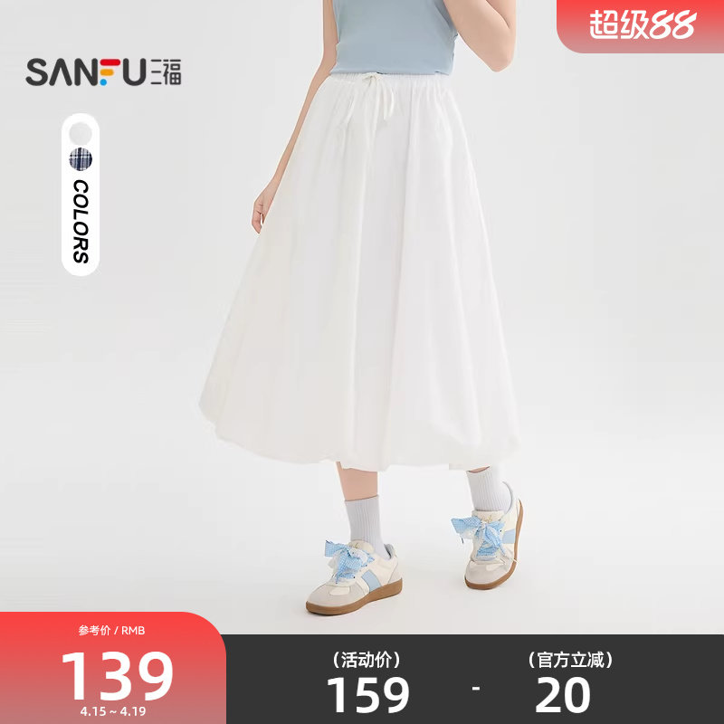 三福花苞半身裙女2026新款夏季巨好看的宽松白色长裙子女装514468