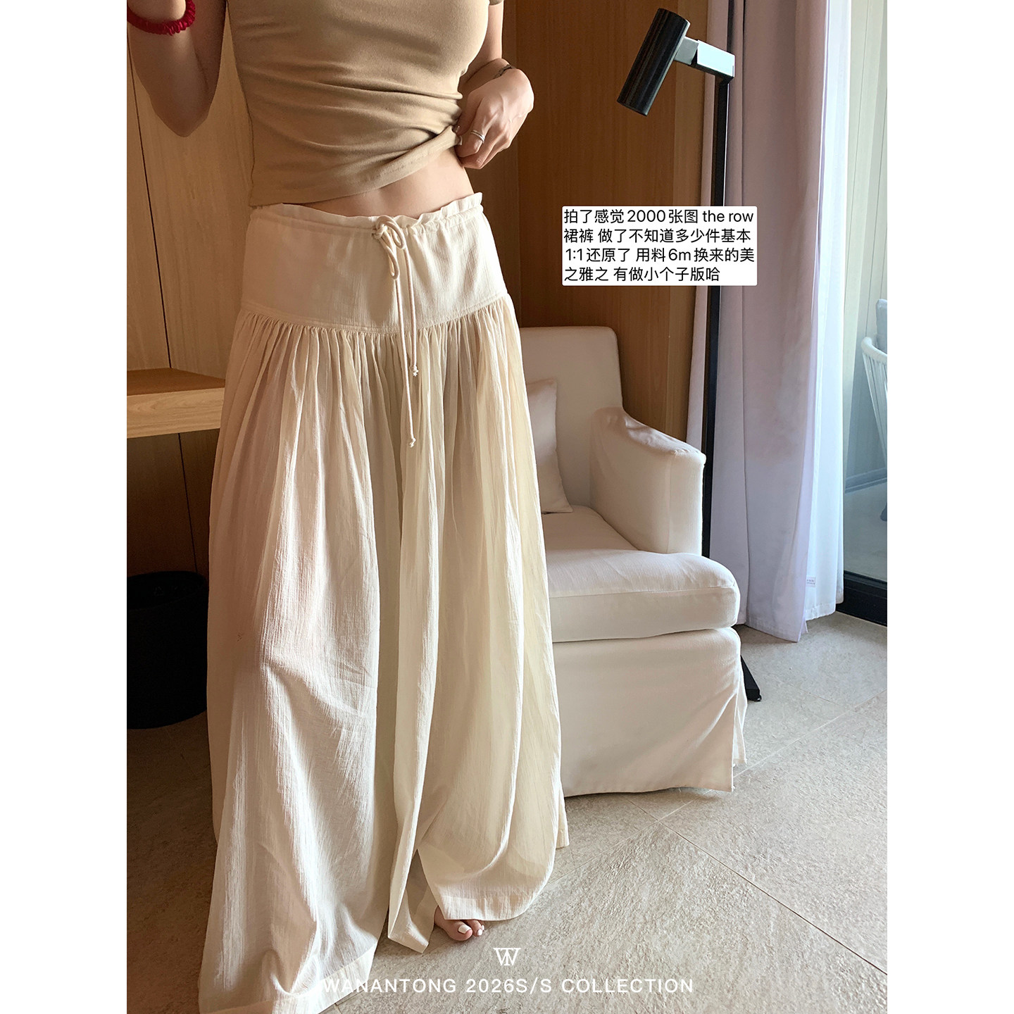 WANANTONG row裙裤 美之雅之 定做水洗工艺自带褶皱女春夏长裤