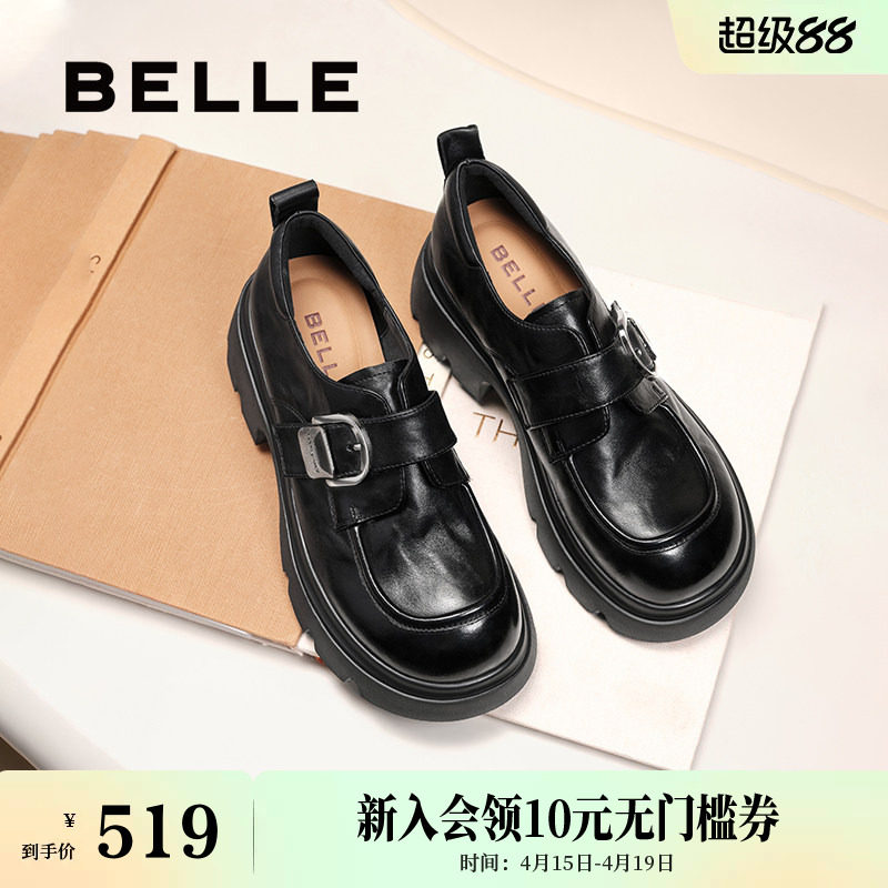 周雨彤同款百丽海鸥乐福鞋女2.0厚底增高真皮英伦皮单鞋子B5J1D预