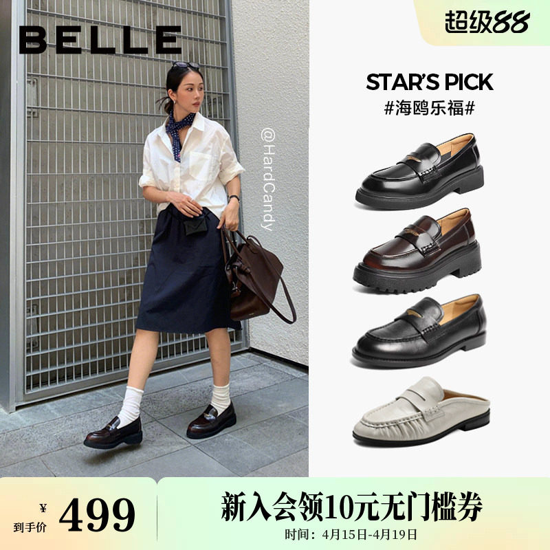 百丽海鸥英伦风乐福鞋女新款软底不累脚小皮鞋单鞋子D7D1DAA5预