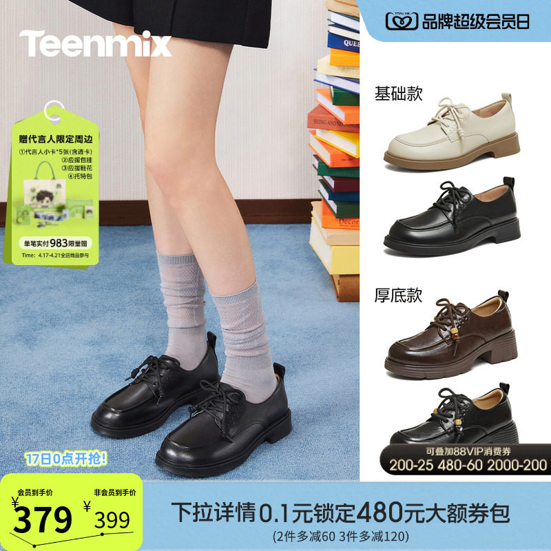 天美意布洛克札记厚底英伦常青藤乐福鞋单鞋女软底小皮鞋2026新款