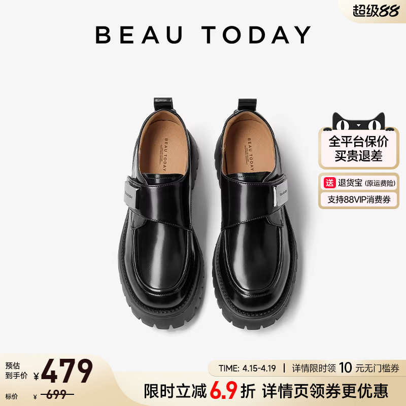 BeauToday黑色乐福鞋女款春增高真皮轻量英伦风小皮鞋厚底单鞋子
