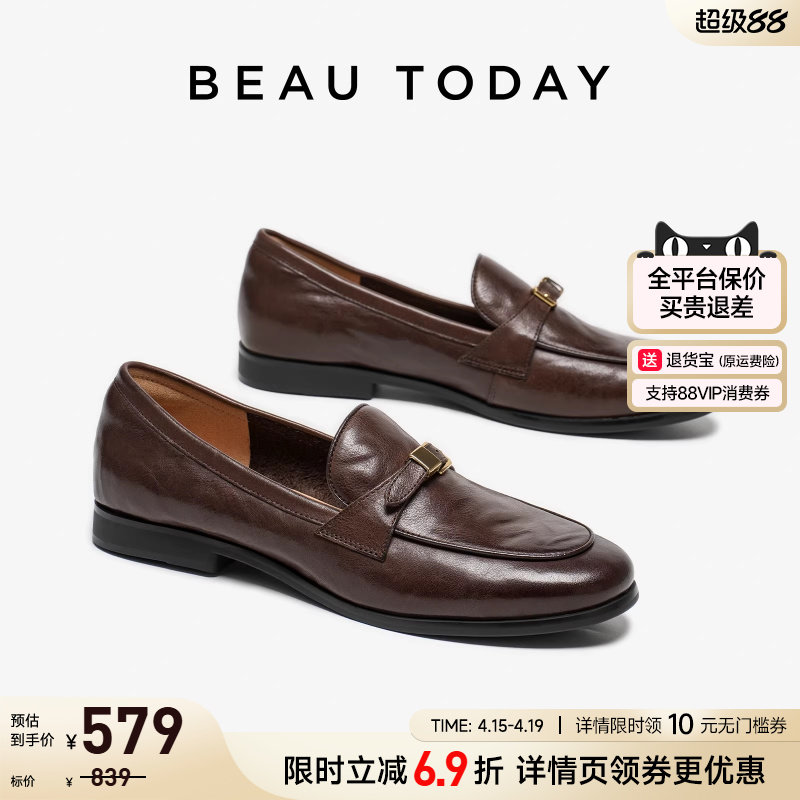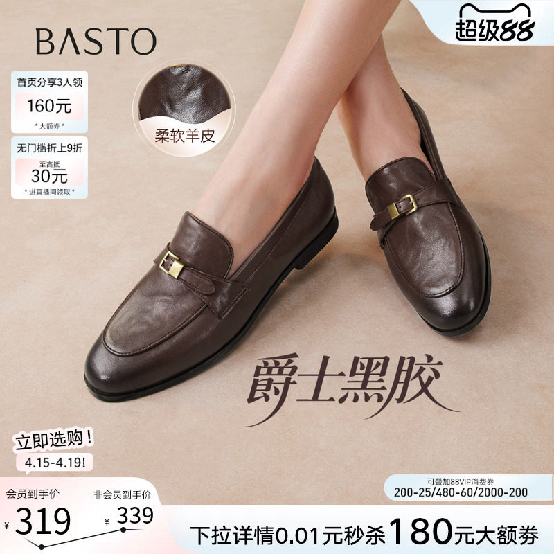 【爵士黑胶】百思图26春新款英伦超软羊皮乐福鞋老钱风皮鞋女单鞋
