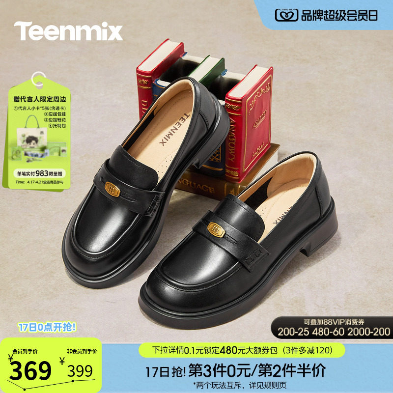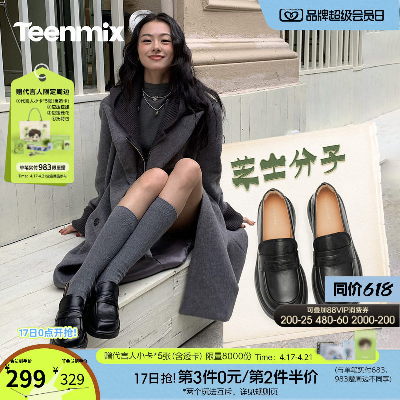 天美意厚底学院英伦乐福鞋复古单鞋女一脚蹬软底小皮鞋2026春新款