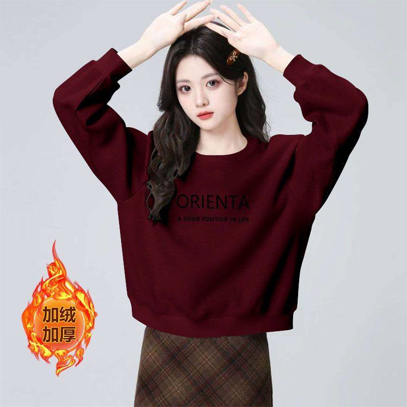 山东即墨圆领薄款卫衣女韩版宽松小个子洋气减龄加绒保暖打底上衣